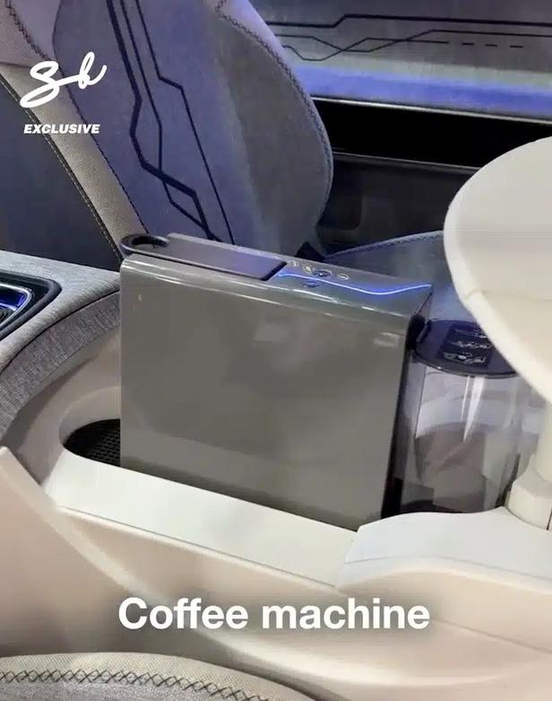 همانطور که در فیلم مشاهده خواهید کرد، یک دستگاه قهوه ساز نیز در کنسول میانی جانمایی شده که حالت مخفی دارد. پس از آن نیز نوبت به میز تاشو و نمایشگر مخفی داخل سقف می رسد!