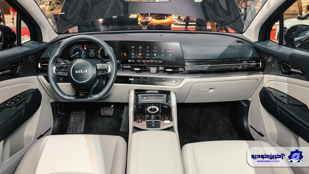 فضای داخلی اسپورتیج هیبرید، همانند نمای بیرونی، طراحی منحصر به فردی دارد. داشبورد خودرو به یک نمایشگر یکپارچه مجهز است که شامل کلاستر صفحه کیلومتر ۱۲.۳ اینچی و صفحه نمایش مالتیمدیا خمیده ۱۲.۳ اینچی میشود. طراحی نامتقارن داشبورد باعث شده تا دسترسی به اکثر دکمهها و کنترل ها برای راننده راحتتر باشد. فضای کابین نیز همانطور که از یک SUV انتظار میرود، جادار و کاربردی است.