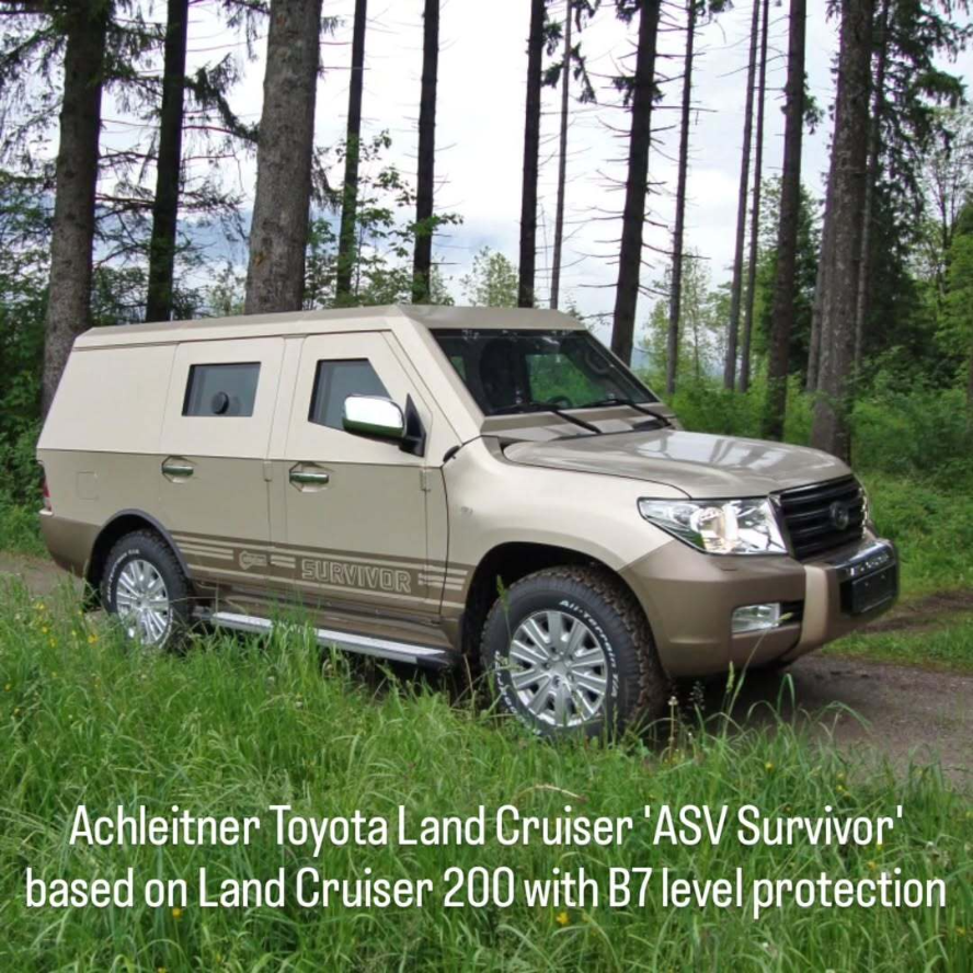 عصر ایران/ کمپانی آلمانی آخلایتنر با استفاده از تویوتا لندکروزر 200، خودرو زرهپوش "ASV Survivor" را با سطح حفاظت B7 ساخته است. این شاسیبلند غولپیکر برای انجام ماموریتهای ویژه و حفاظت از جان سرنشینان در شرایط بسیار خطرناک طراحی شده است./سطح حفاظتی B7 قوی ترین سطح محافظتی است و می تواند گلوله های مختلف ضد زره را که از اسلحه های با سرعت بسیار بالا -مانند گلوله های که از اسلحه های تک تیرانداز- شلیک می شود، را متوقف می کند. این سطح تا حدودی نیز در برابر انفجار مقاوم است.
