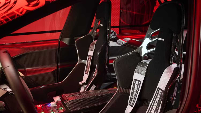 آیا پروتوتایپ موردبحث پیشنمایشی از M3 برقی است؟ باید گفت قبل از راندن آن بی ام و لباسهای مسابقهای کاملی را تدارک دیده بود و سپس ما روی یکی از چهار صندلی مسابقهای فیبر کربنی در کابینی که فاقد هرگونه تجهیزات عادی بود نشستیم. تست این خودرو در پیست اسپارتانبورگ کارولینای جنوبی انجام شد و آنچه در مرحله بعد رخ داد ما را شوکه کرد. ویژن درایوینگ اکسپرینس ۱۷۹۹۰ نیوتون متر گشتاور تولید میکند به این معنی که اندامهای داخلی بدن میتوانند به صندلیها بچسبند. بی ام و اظهار میدارد این پروتوتایپ توانایی هندل کردن قدرت قابلتوجهی را دارد و یک راننده متوسط به راحتی خواهد توانست آن را کنترل کند.