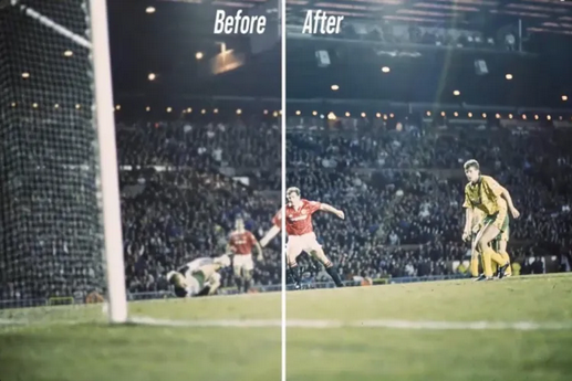 یکی از تصاویر بازسازیشده، لحظهی بهثمر رسیدن گل مارک هیوز (Mark Hughes) مقابل نوریچ سیتی (Norwich City) را ثبت کرده است؛ گلی که در همان فصلی به ثمر رسید که منچستریونایتد نخستین قهرمانی خود در لیگ برتر فوتبال انگلستان (Premier League) را جشن گرفت.