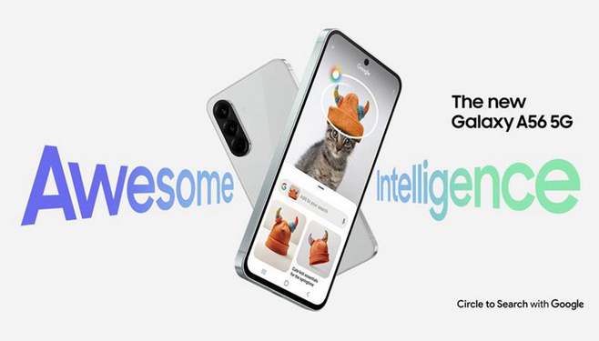 در حوزه هوش مصنوعی که سامسونگ آن را Awesome Intelligence نامیده است، گلکسی A۵۶ از ویژگی Circle to Search بهبودیافته بهره میبرد. این ابزار مبتنیبر گوگل حالا استفادهی آسانتری دارد و میتواند شمارههای تلفن، آدرسهای ایمیل و جستجوی آهنگها بدون تغییر برنامه را تشخیص دهد.