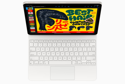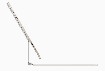 مجیک کیبورد جدیدی که برای آیپد ایر معرفی شده است، ترکپد بزرگتر از نسل قبل دارد و از کلیدهای Function برای سهولت دسترسی به ابزارهایی مثل تنظیم روشنایی نمایشگر و کنترل شدت صدا بهره میبرد.