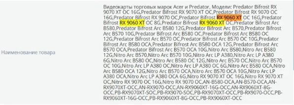 در فهرست EEC به وجود کارت گرافیک Acer Predator Bifrost Radeon RX 9060 XT اشاره شده است و نسخههای Nitro نیز مشخصاً متعلق به سری RX 9070 هستند.