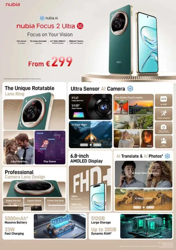 شرکت نوبیا در کنگره جهانی موبایل بارسلون از گوشی فوکوس ۲ اولترا رونمایی کرده است. این گوشی شباهتهای زیادی با شیائومی ۱۵ اولترا دارد اما بهمراتب ارزانتر روانه بازار میشود.