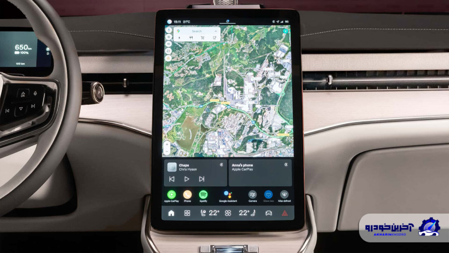 ولوو ES90 از نظر فناوریهای به کار رفته در داخل کابین، در زمره پیشرفتهترین مدلهای الکتریکی بازار قرار میگیرد. در قسمت میانی داشبورد این خودرو، یک نمایشگر عمودی ۱۴.۵ اینچی قرار گرفته که تقریباً تمام تنظیمات خودرو از طریق آن انجام میشود. این نمایشگر، علاوه بر کنترل سیستم تهویه چهار ناحیهای، به یک سیستم صوتی با کیفیت از برند معروف Bowers & Wilkins متصل شده که تجربه صوتی فوقالعادهای را رقم میزند. بد نیست بدانید این سیستم صوتی به ۲۵ بلندگو مجهز است!