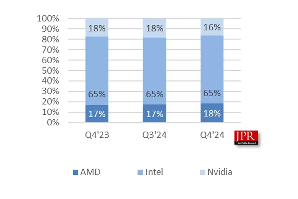 در سهماهه آخر سال گذشته میلادی، بیش از ۷۸ میلیون کارت گرافیک کامپیوترهای شخصی به بازار عرضه شده است که رشد یک درصدی در مقایسه با مدت مشابه در سال ۲۰۲۳ در سراسر پلتفرمها را از خود نشان میدهد. در این میان، فروش پردازندههای گرافیکی لپتاپها شاهد رشد ۲ درصدی بوده است؛ درحالی که میزان فروش کارتهای گرافیک دسکتاپ ۳ درصد کاهش را به ثبت رسانده است. همچنین پیشبینی میشود تا حجم کلی این بازار از سال ۲۰۲۴ تا ۲۰۲۸ سالانه ۱ درصد کاهش پیدا کند.