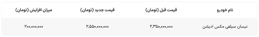 نیسان سیلفی مکس ادیشن در واقع فول ترین نمونه از سدان سیلفی است که در دور جدید واردات خودرو به ایران آمده و شرکت نامی خودرو آن را در سامانه یکپارچه عرضه می کند. سدانی جذاب که در هر مرحله از عرضه تقاضای بالایی برای آن ثبت می شود و در نظرسنجی های مردمی به عنوان یکی از با کیفیت ترین خودروهای وارداتی شناخته می شود. به تازگی شرکت نامی خودرو قیمت جدید نیسان سیلفی مکس ادیشن را ۲ میلیارد و ۵۵۰ میلیون تومان اعلام کرده است. لازم به ذکر است که این سدان پیش از این برچسب قیمتی ۲ میلیارد و ۳۵۰ میلیون تومانی را داشت و این یعنی افزایش قیمت ۲۰۰ میلیون تومانی را برای این خودرو داشته ایم. به نکته هم دقت داشته باشید که در سال آینده به احتمال خیلی زیاد افزایش تعرفه واردات حتی برای خودروهای هیبرید را خواهیم داشت و با افزایش نرخ ارز مورد محاسبه در حقوق ورودی گمرکی، در مجموع افزایش قیمت بسیار زیادی را برای وارداتی ها خواهیم داشت.