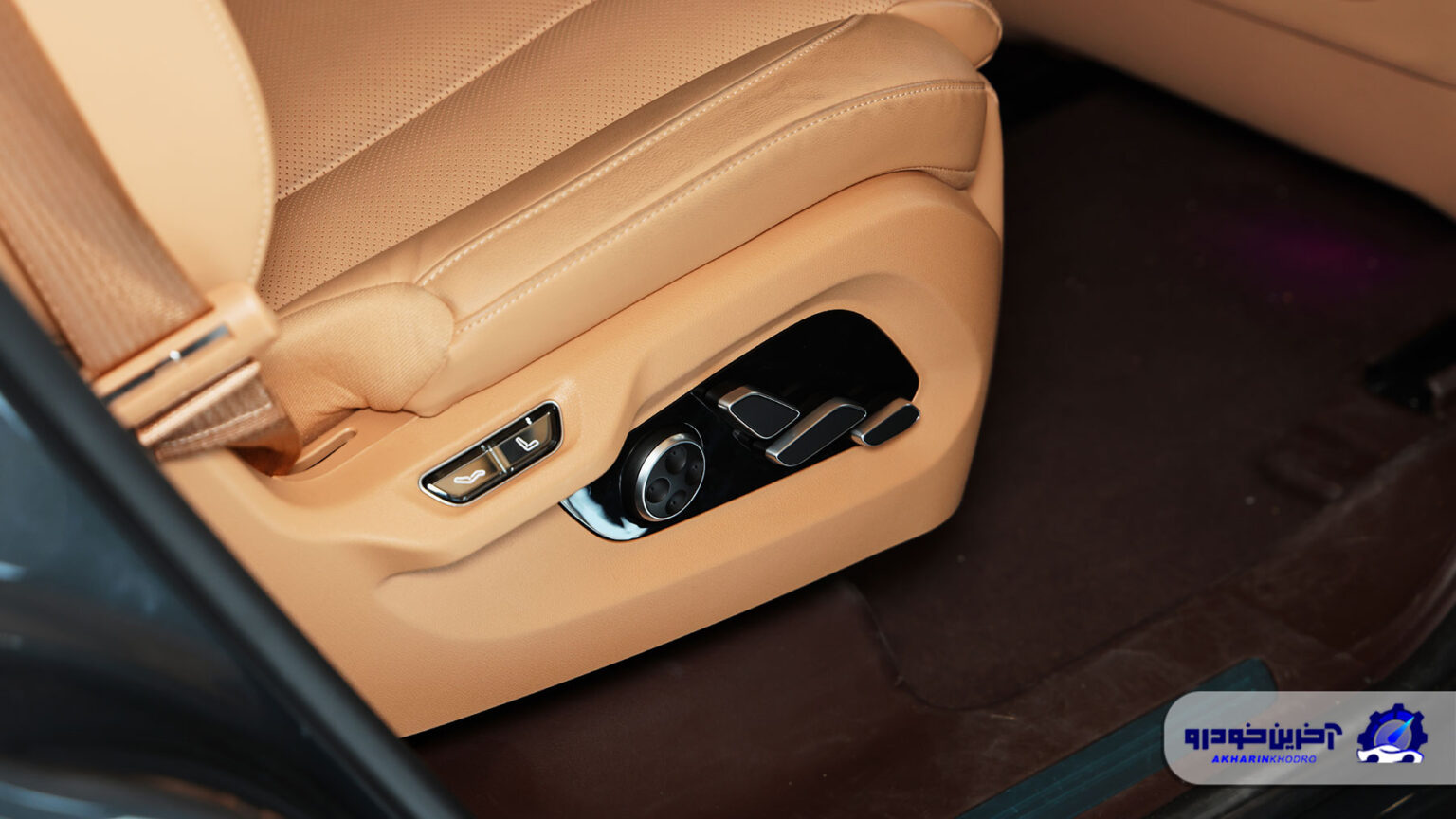 این خودرو در کلاس SUV های لوکس چینی قرار دارد و باید از آن انتظار متریال با کیفیت داشت. در این خودرو شاهد ترکیب ۴ نوع متریال پلاستیک طرح چوب، چرم، جیر و مخمل هستیم که هر کدام ویژگی های لوکس بودن را کاملا به سرنشینان انتقال می دهند. بر روی داشبورد متریال سافت تاچ استفاده شده که ترکیبی از فوم های با کیفیت و چرم با دوخت بسیار منظم است. متریال استفاده شده بر رودری های جلو و عقب یکسان می باشد. بخش بالای رودری جیر، میانی طرح چوب و بخش دستگیره ترکیب چرم و مخمل می باشد. صندلی ها از رویه چرم با مجرای گردش هوا بهره می برد و کیفیت فوم آنها بسیار بالا است.
