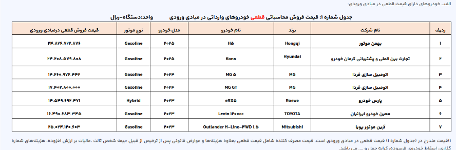 همزمان با بازگشایی سایت سامانه یکپارچه خودروها، لیستی متشکل از هشت خودرو با قیمتهای قطعی در مبادی ورودی برای مشتریان عرضه شد و به تاکید مهدی تقدسی- مدیر سامانه یکپارچه خودروها - اعلام شد که لیست خودروهای قابل عرضه در این دور از فروش خودروهای وارداتی که دارای قیمت علیالحساب در مبادی ورودی هم هستند، روز یکشنبه بر روی سایت سامانه بارگذاری و به عنوان گزینه برای انتخاب متقاضیان فعال خواهد شد.