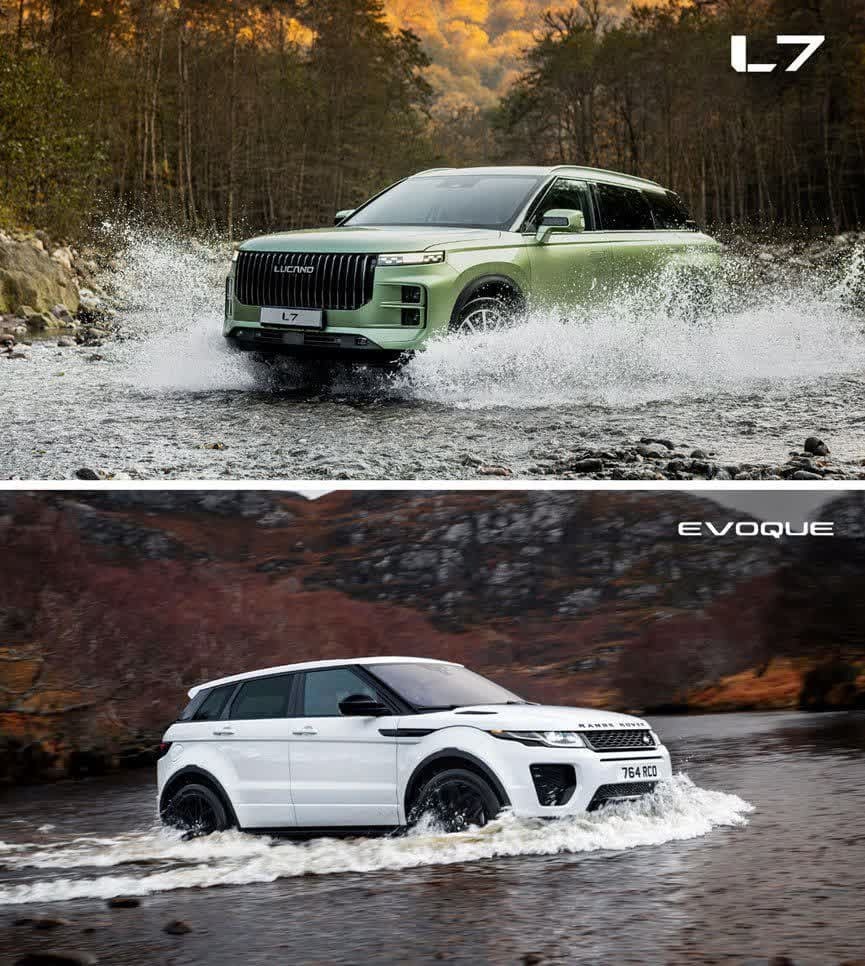 طراحی خارجی لوکانو L7 ترکیبی از مدرنیته و لوکس بودن است که توجه هر بینندهای را به خود جلب میکند. بدنهی صاف و قوسهای ملایم آن شباهتهایی به سبک منحصر به فرد رنجرور ایووک دارد، اما جزئیات طراحی L7 از نظر دینامیک و جذابیت جلوهای خاص و متفاوت دارد. به طور مثال، لوکانو L7 به چراغ جلوهای دوتکهای با طراحی مشبک، سقف به سبک کوپه و چراغهای ترمز عقب عریض و یک تکه مجهز است که به آن ظاهری مدرن، آیندهنگر و ورزشی میبخشد. از سوی دیگر، رنجرور ایووک طراحی کلاسیک و مستحکم خانواده لند روور را حفظ کرده است. بدنهی این خودرو ظاهری مقاوم و قدرتمند دارد و تمرکز اصلی آن بر عملکرد آفرود است، در حالی که همچنان حس لوکس و شیک بودن را به طور کامل منتقل میکند.