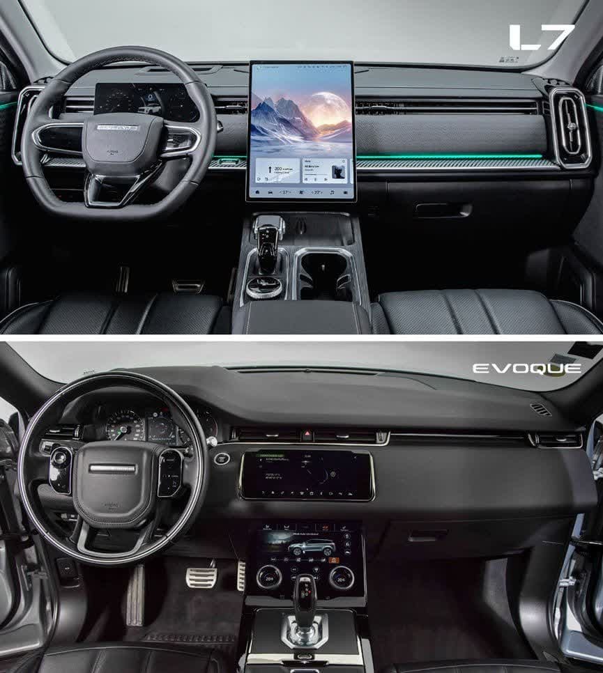 داخل لوکانو L7 طراحی مدرن و مینیمالیستی دارد که با یک صفحه نمایش ۱۰.۲۵ اینچی برای کیلومترشمار و یک صفحه نمایش بزرگ ۱۴.۸ اینچی، فضایی عالی برای رانندگی ایجاد میکند. مواد استفاده شده در داخل خودرو با دقت انتخاب شدهاند و حس بالایی از لوکس بودن را به داخل کابین بخشیده است. در مقابل، رنجرور ایووک طراحی داخلی امضای لند روور را ادامه میدهد، با صندلیهای چرمی بینظیر و استفاده از مواد درجه یک که محیط کابین را حتی لوکستر میکند