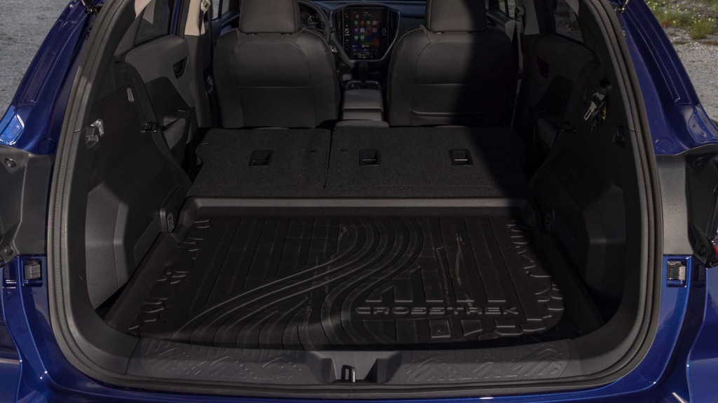 کابین یکی از نقاط قوت سوبارو کراس ترک جدید محسوب می شود. طراحی کنسول اصلی و جانمایی جزئیات در نوع خود کاربردی و جالب هستند. کیفیت مواد اولیه نیز حتی در بافت سخت، سطح بالایی دارد. از فناورانه های کابین باید به نمایشگر اصلی تنظیمات سیستم سرگرمی در اندازه 11.6 اینچی اشاره کنیم که در حالت عمودی داخل کنسول جانمایی شده است. سیستم صوتی 432 وات هارمن کاردون با 10 اسپیکر از دیگر آپشن های کراس ترک است.