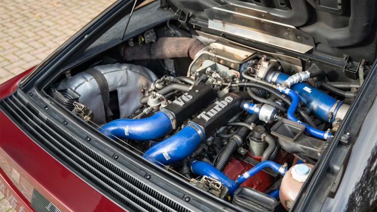 نسخه اولیه آلپین GTA V6 GT با موتور ۲.۵ لیتری V6 و تنها ۱۶۰ اسب بخار، در بازار و پیست عملکرد ضعیفی داشت و فروش بالایی را تجربه نکرد. آلپین که حدود یک دهه بود به تملک رنو درآمده بود، در واکنش به این وضعیت، در سال ۱۹۸۵ در نمایشگاه خودروی بیرمنگام، نسخه توربوشارژ GTA را با ۲۰۰ اسب بخار معرفی کرد که تنها ۲۰ اسب بخار کمتر از پورشه ۹۴۴ توربو بود. این مدل با شتاب صفرتاصد در حدود ۶ ثانیه، عملکردی مشابه ۹۴۴ توربو داشت و فروش را بهسرعت افزایش داد. موتور V6 آبخنک با زاویه ۹۰ درجه، بخشی از خانواده موتورهای PRV (پیشرانهٔ مشترک پژو، رنو و ولوو) بود که از سال ۱۹۷۴ تولید میشد. این موتور که بر پایه یک V8 قدیمیتر طراحی شده بود، با وجود سادگی، قابلیت اطمینان خوبی داشت؛ اما در سال ۱۹۹۰، قوانین سختگیرانه زیستمحیطی فرانسه، رنو را مجبور کرد قدرت را به ۱۸۵ اسب بخار کاهش دهد. رنو با تنظیم ضرایب گیربکس، سعی کرد این افت را جبران کند، اما هزینه و پیچیدگی تطبیق با استانداردها، مانع تقویت بیشتر شد.