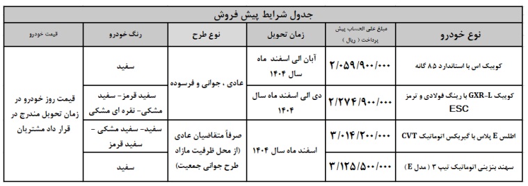 / ضمن تبریک به مناسبت آزاد سازی خرمشهر به اطلاع مشتریان و نمایندگی های مجاز گروه خودرو سازی سایپا می رساند، شرایط پیش فروش محصولات شرکت سایپا و پارس خودرو به شرح ذیل در سامانه گروه خودروسازی سایپا به شرح ذیل فعال خواهد شد.