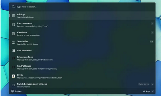 مایکروسافت ابزار Window Walker را به لانچر جدیدش منتقل کرده تا جابهجایی بین پنجرههای باز آسانتر شود. نکتهی قابل توجه در مورد Command Palette این است که از افزونهها پشتیبانی میکند و کاربران میتوانند قابلیتها و دستورات جدیدی به آن اضافه کنند.