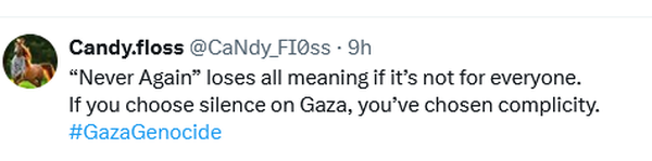"دیگر هرگز" اگر برای همه نباشد، تمام معنی خود را از دست میدهد. اگر در مورد غزه سکوت کنید، همدستی را انتخاب کردهاید.#نسلکشی_غزه