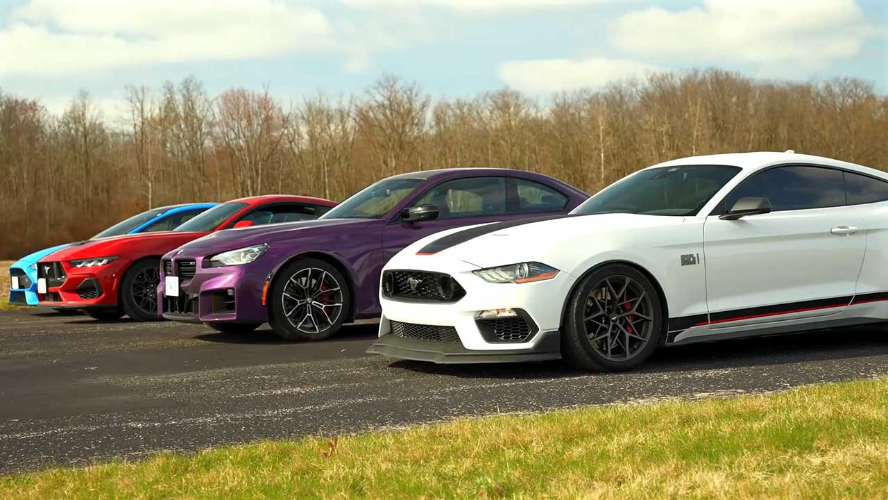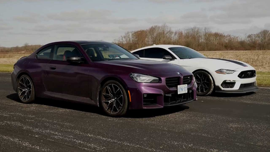 در ادامه، نوبت به دو خودروی دیگر یعنی بامو M2 و فورد ماستنگ مکوان رسید که مثل خودروهای قبلی، هردو گیربکس دستی دارند. بامو M2 مدل ۲۰۲۵ با موتور ۳ لیتری شش سیلندر خطی توئین توربو، ۴۸۰ اسب بخار تولید میکند، درحالیکه فورد ماستنگ مکوان ۲۰۲۱ با موتور ۵ لیتری V8 کایوت ۴۸۰ اسب بخار دارد و هر دو دیفرانسیل عقب هستند. این رقابت نزدیکتر و عادلانهتر از قبلی است زیرا نهتنها قدرت دو خودرو یکسان است بلکه از لحاظ وزن هم با ۱۷۰۰ کیلوگرم برای بامو و ۱۷۴۵ کیلوگرم برای ماستنگ، نزدیک به هم هستند.