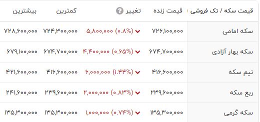 قیمت طلا و انواع سکه را در جدول زیر مشاهده می کنید.