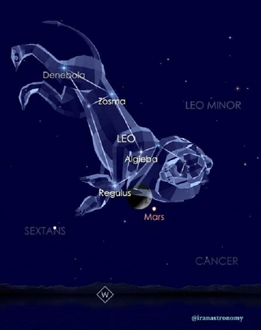 همنشینی سیاره سرخ بهرام و ستاره دل شیر - شامگاه یکشنبه ۱۱ خردادماه جاری