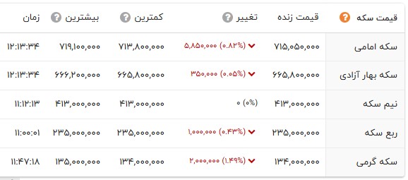 قیمت طلا و انواع سکه را در جدول زیر مشاهده می کنید.