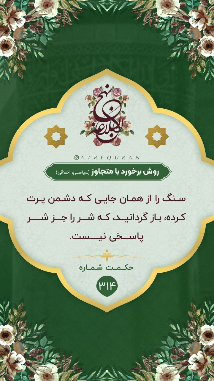 و درود خدا بر او، فرمود: سنگ را از همان جایى که دشمن پرت کرده، باز گردانید، که شر را جز شر پاسخى نیست.