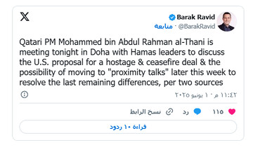 به گزارش روسیا الیوم، «باراک راوید»، گزارشگر آکسیوس در سکوی ایکس به نقل از منابع مطلع اعلام کرد که «محمد بن عبدالرحمن»، نخست وزیر و وزیرخارجه قطر دیشب در دوحه پایتخت این کشور با رهبران حماس پیرامون پیشنهاد آمریکا برای آتشبس غزه گفتوگو کرده است.