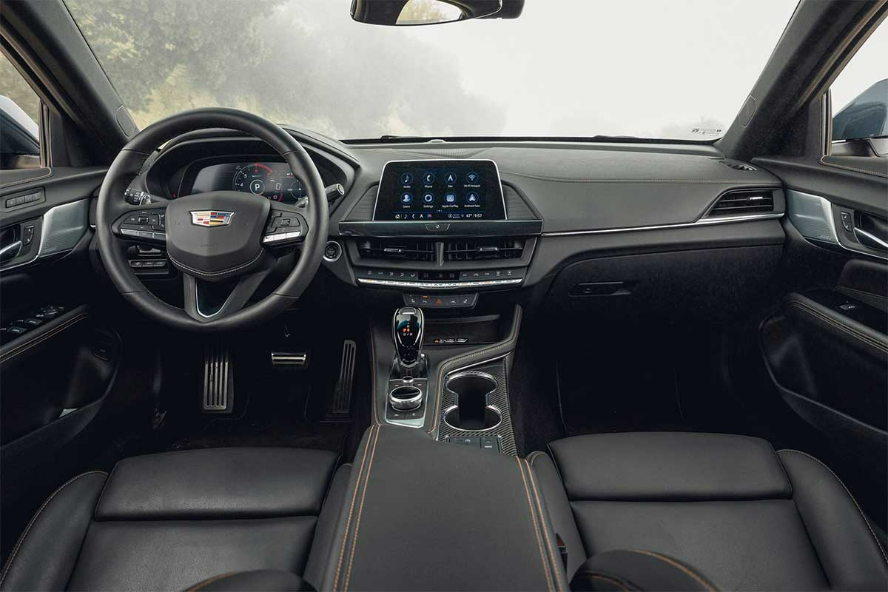بزرگترین نقطهضعف CT4-V اما نه در رانندگی یا پرفورمنس آن، بلکه در حس و حال کابین است. کابین CT4-V پر از پلاستیک سیاه یکنواخت است و صفحهنمایش اطلاعاتیسرگرمی ۸ اینچی برای خودرویی با این قیمت کوچک است و ظاهری قدیمی دارد، بهویژه در کنار صفحه آمپر ۱۲ اینچی قابل تنظیم که بخشی از پکیج فناوری ۱,۳۵۰ دلاری است. این نوع طراحی داخلی برای برندهای معمولیتر قابلقبول است اما یک کادیلاک باید فضایی مجللتر ارائه دهد. بهطورکلی، CT4-V سدانی توانمند و راحت است، اما بیشازحد به مدل پایه نزدیک به نظر میرسد.