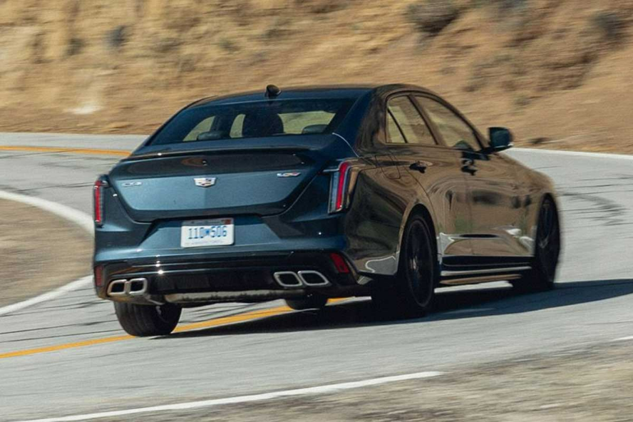این خودرو یک ماشین اسپرت نیست، اما تنظیمات دیفرانسیل عقب آن میتواند در جادههای پرپیچوخم لذت زیادی فراهم کند. CT4-V امکان شخصیسازی همهچیز را از حس ترمز تا سفتی کمکفنرها فراهم میکند. این خودرو درست مانند بلکوینگ، دارای دکمه V-mode است که تنظیمات پیست و ضبط کننده دادههای پیست را فعال میکند. البته هرچند CV4-V خودروی توانمندی است ولی در پیچها نمیتواند مثل بلکوینگ حرفهای رفتار کند. در تست چسبندگی، CT4-V شتاب جانبی ۰.۹۲ جی ثبت کرد که بازهم قابلاحترام است اما فاصله زیادی با ۱.۰۴ جی CT4-V بلکوینگ دارد.