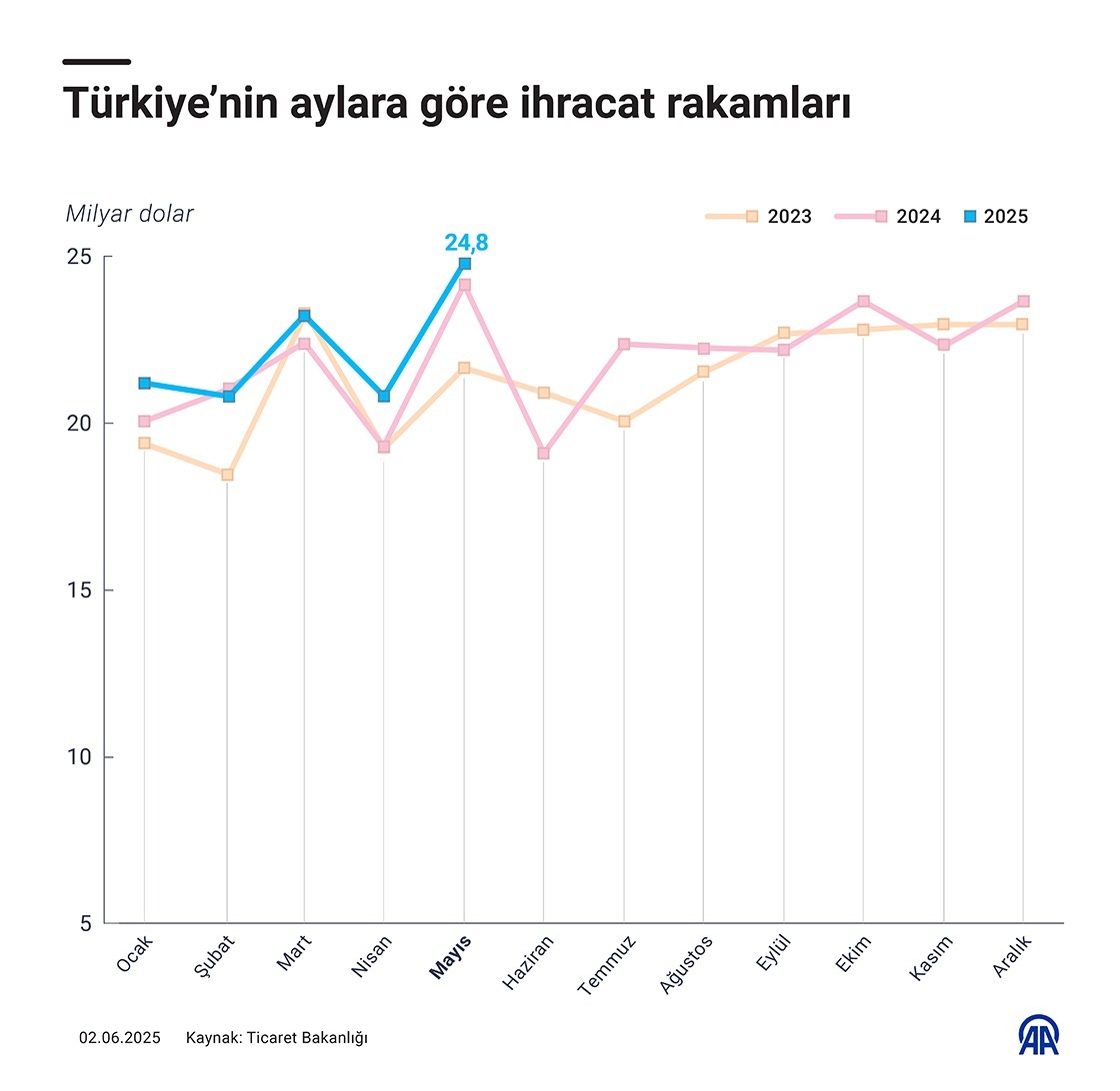 بر پایه اطلاعات ارائهشده، صادرات ترکیه در پنجماهه نخست سال ۲۰۲۵ با رشد ۳.۵ درصدی نسبت به سال گذشته، به ۱۱۱ میلیارد دلار رسیده و فقط در ماه فوریه کاهش داشته که آن هم بهدلیل کوتاه بودن ماه بوده است. در همین مدت، بیشترین رشد صادرات مربوط به خودرو، سنگهای نیمهقیمتی، دستگاههای الکتریکی، ماشینآلات و کشتیها بوده است.