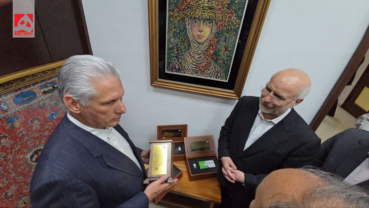 عکس/ اهدای ۴ کیت دارویی هستهای ایرانی به رئیس جمهور کوبا توسط قالیباف