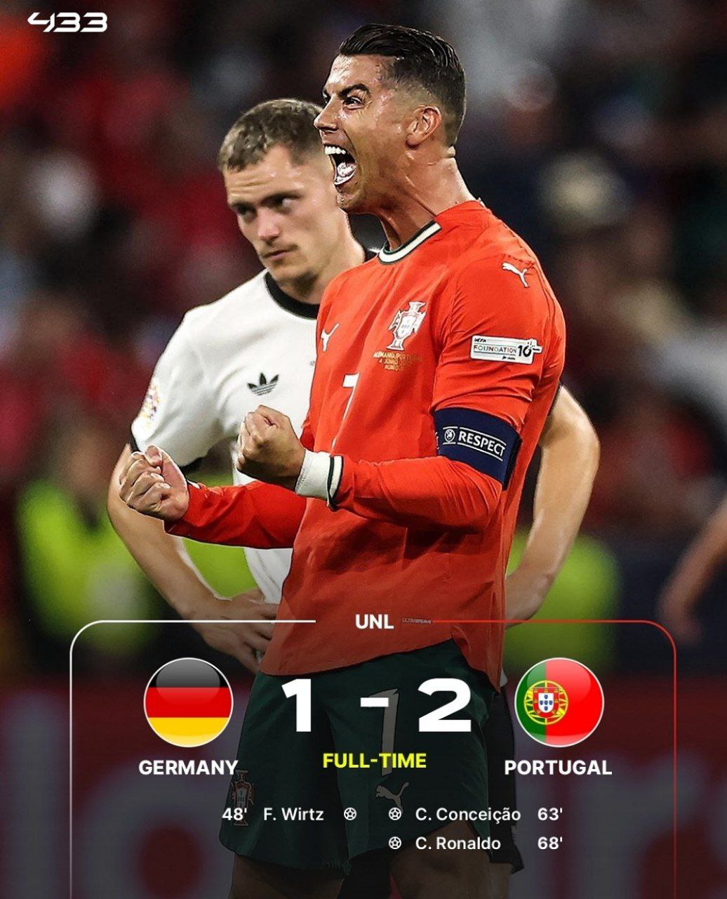 تسنیم/نخستین بازی مرحله نیمهنهایی لیگ ملتهای اروپا 25-2024 از ساعت 22:30 شب گذشته (چهارشنبه) بین تیمهای ملی آلمان و پرتغال در ورزشگاه آلیانتس شهر مونیخ برگزار شد و پرتغالیها با کامبکی دراماتیک به پیروزی 2 بر یک رسیدند و ضمن حذف ژرمنها در خانهشان به عنوان نخستین تیم راهی فینال این رقابتها شدند.