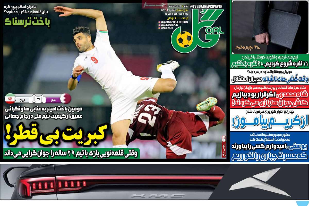 صفحه اول روزنامه گل شنبه ۱۷ خرداد