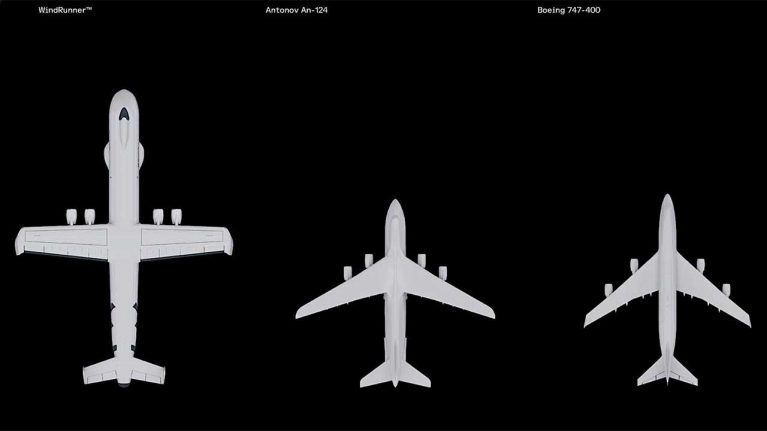 هواپیمای ویندرانر با طول ۱۰۸ متر، از هواپیمای افسانهای آنتونوف An-225 با طول ۸۴ متر پیشی گرفته است. محفظه بار این هواپیما ظرفیت عظیم ۷۷۰۰ مترمکعب را ارائه میدهد که در مقایسه با ایرباس بلوگا XL با ظرفیت ۲۲۰۰ مترمکعب، بسیار چشمگیر است. اگرچه مشخصات اولیه ظرفیت ۸۲۰۰ مترمکعب را نشان میداد، اما حتی با اعداد اعلامی جدید هم ویندرانر همچنان در صدر قرار دارد. این هواپیما توسط شرکت رادیا طراحی شده که حدود ۹ سال پیش توسط متخصصانی از MIT و بوئینگ تأسیس شد. ویندرانر در ابتدا برای حمل تیغههای توربین بادی با طول ۱۰۵ متر طراحی شده بود اما اکنون توجه صنایع هوانوردی را به خود جلب کرده و برای حمل ماهوارهها و خودروهای زرهی با حداکثر وزن ۷۲ تن نیز در نظر گرفته شده است.