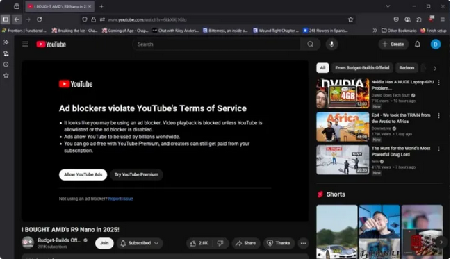 یوتیوب در جنگی تمامعیار علیه ادبلاکرها قرار دارد و بهنظر میرسد آخرین حرکت این پلتفرم، مسدودکردن تبلیغات در مرورگر فایرفاکس را با مشکل مواجه کرده است.