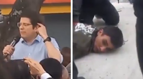 در یک ویدیو در حالی که بسیاری از مردم فریاد میزنند و درخواست کمک میکنند، سه مرد، او را در آغوش گرفتهاند و به زخم گردن و سر او فشار میآورند.