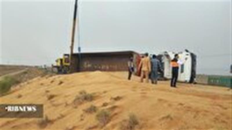 صدا و سیما/ واژگونی تریلی حامل بار گندم محور نهبندان به زاهدان را مسدود کرد.