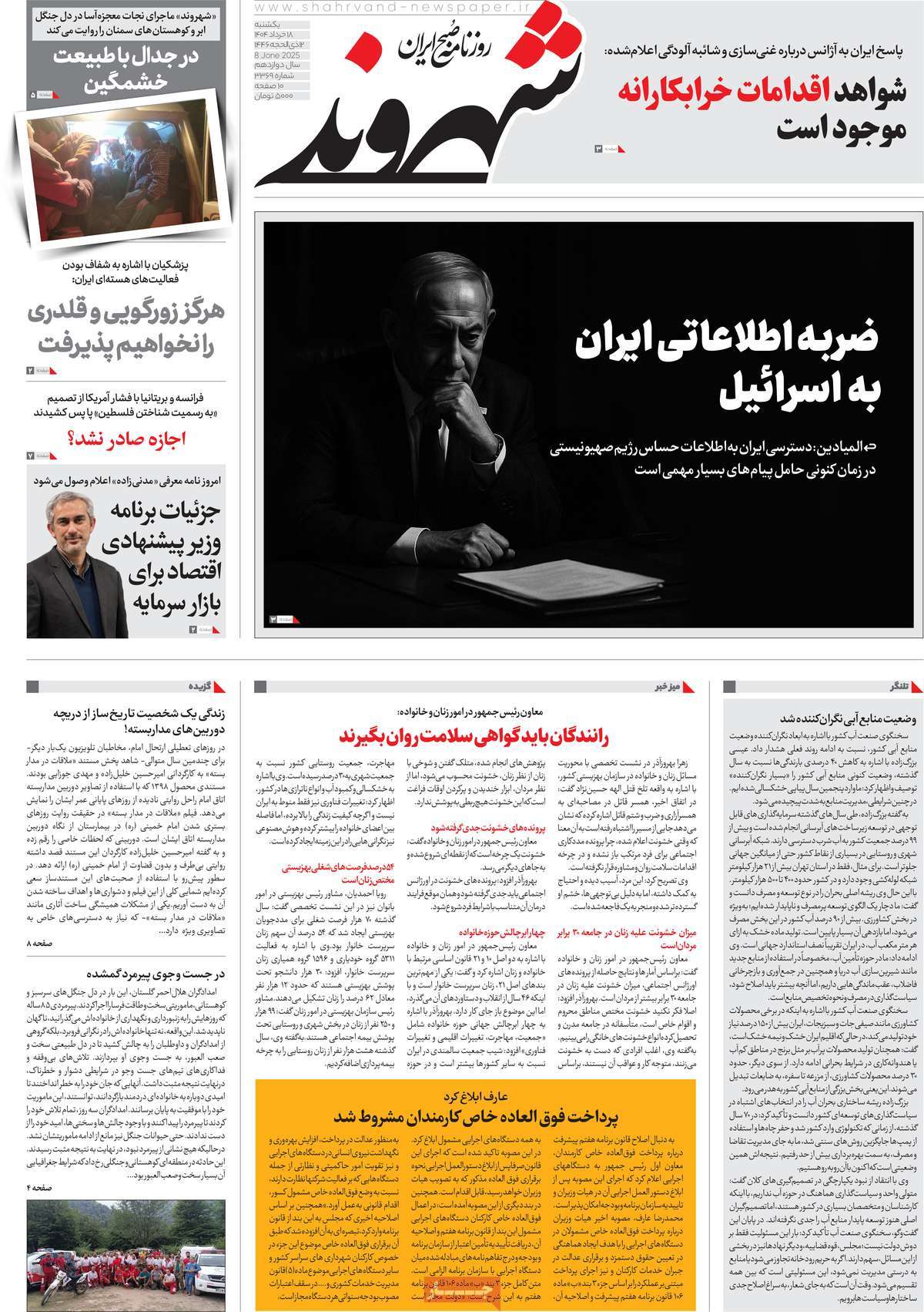 صفحه اول روزنامه شهروند یکشنبه ۱۸ خرداد