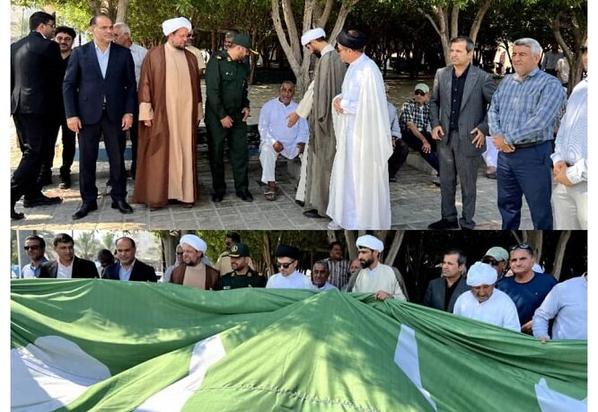 اهتزاز پرچم غدیر در ساحل عسلویه