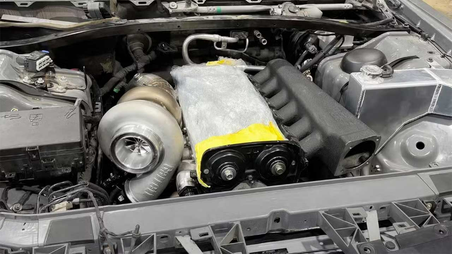 اوایل امسال، تیم ScrapLife Garage پروژهای دیگر را رونمایی کرد که موتور هلفانت را در یک تویوتا سوپرا نسل چهار نصب شده بود. آن پروژه به دلیل ابعاد بزرگ موتور V8 همی و سوپرشارژر غولپیکرش چالشهای زیادی داشت. نصب چنین موتوری در سوپرا نیازمند حل مشکلات متعددی بود اما در مقابل، محفظه موتور یک دوج چلنجر هلکت فضای بسیار بیشتری ارائه میدهد. وقتی تیم فاصله بین برجکهای تعلیق را در هر دو خودرو اندازهگیری کرد، متوجه شد که چلنجر حدود ۲.۵ سانتیمتر فضای بیشتری نسبت به سوپرا دارد. حتی با نصب توربوشارژر عظیم گرت G42-1200 و منیفولد هوای Rex Speed، فضای کافی برای انجام این تعویض وجود داشت. علاوه بر این، موتور 2JZ تنها حدود ۶۳ سانتیمتر بلندتر از موتور V8 هلکت است و عمق زیاد محفظه موتور چلنجر به این معناست که هیچ نگرانی بابت فضای عمودی وجود ندارد.