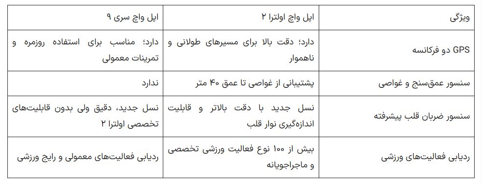 مقایسه امکانات ورزشی و سنجش سلامت اپل واچ اولترا ۲ و سری ۹