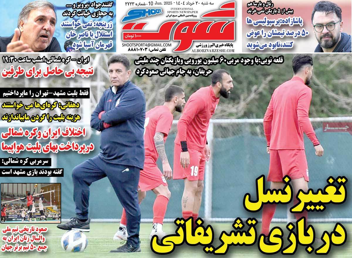 صفحه اول روزنامه شوت سه‌شنبه ۲۰ خرداد