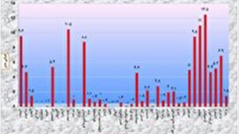 در این مدت در چاشم ۱۱ میلیمتر ، مهدیشهر ۱۰.۵ میلیمتر، سمنان ۹.۶ میلیمتر و در روستای لرد مهدیشهر ۹.۵ میلیمتر باران باریده و میزان بارندگی در سایر نقاط این استان کمتر از ۹ میلیمتر بوده است.