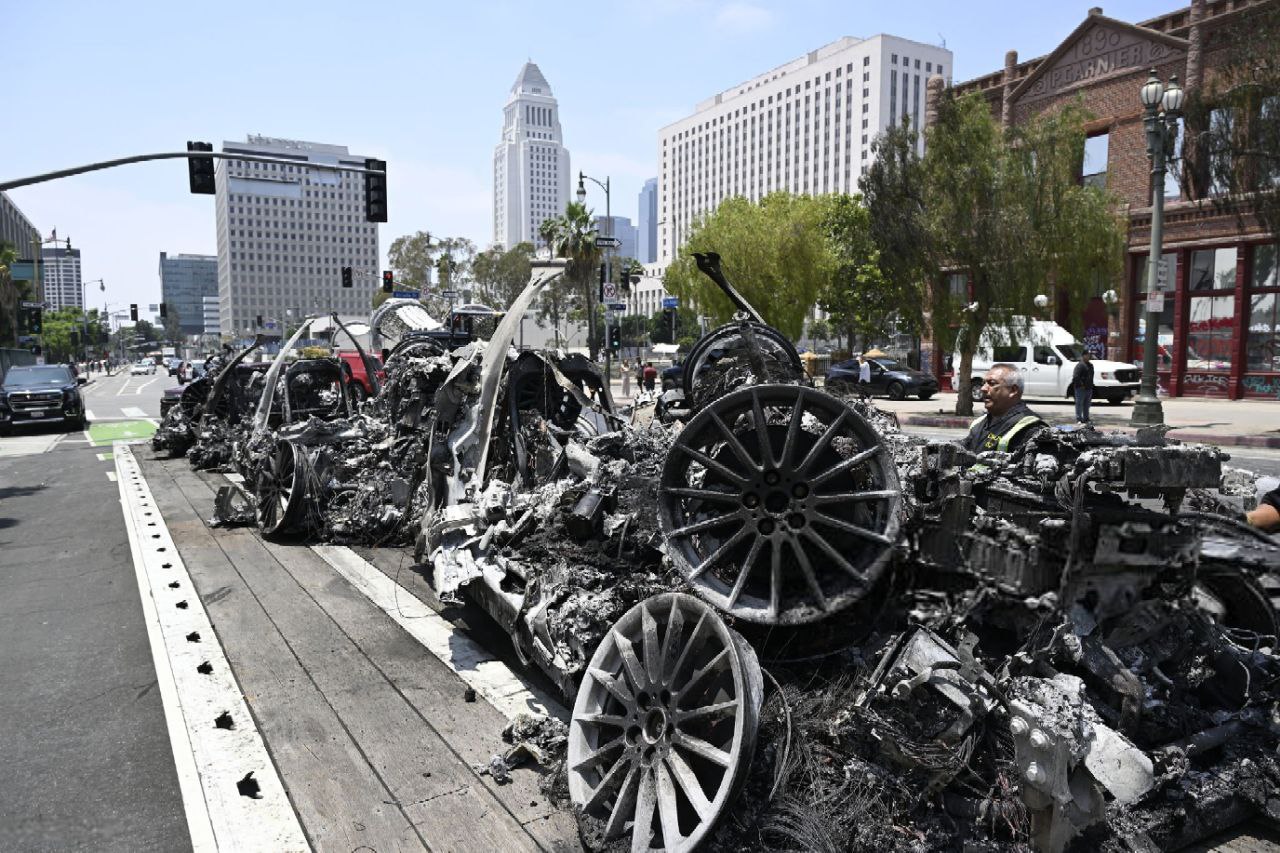 پاکسازی خیابان های لسآنجلس از خودروهای سوخته پلیس