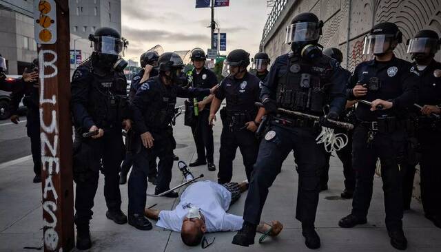لورن توماسی، خبرنگار استرالیایی در حالی که میکروفون تلویزیون در دست داشت و در حال پخش زنده اعتراضات لسآنجلس برای بینندگان در خانه بود هدف یک گلوله پلاستیکی قرار گرفت. لورن پس از نیک استرن، عکاس بریتانیایی، دومین روزنامهنگاری بود که هنگام پوشش اعتراضات در لسآنجلس که به دلیل حملات مهاجران برانگیخته شده، با گلولههای غیرکشنده هدف قرار میگیرد. اما او اولین کسی بود که در دوربینها ثبت و تصویر او در سراسر جهان پخش شد.