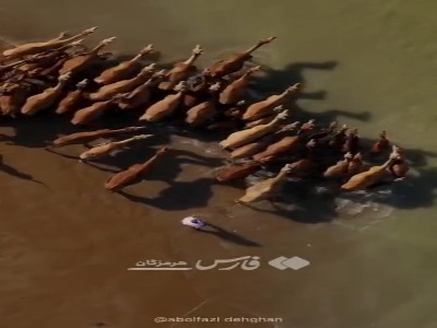 فارس/ حمام شترها در آب‌های خلیج فارس روستای سهیلی، جزیره قشم یکی از جلوه‌های کم‌نظیر طبیعت جنوب ایران است.