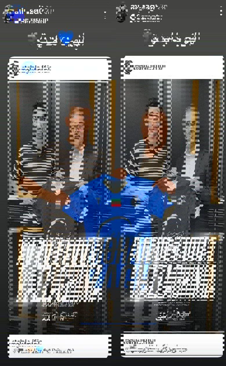 رزاقی نیا با بازنشر پست ویژه صفحه رسمی استقلال برای جذب خودش را بازنشر داد و فقط نوشت: "الهی به امید تو" . البته که او از ایموجی قلب آبیها که یکی از نمادهای استقلالیها در فضای مجازی به حساب میآید هم استفاده کرد تا خوشحالی خود برای نهایی شدن این انتقال را نشان دهد.