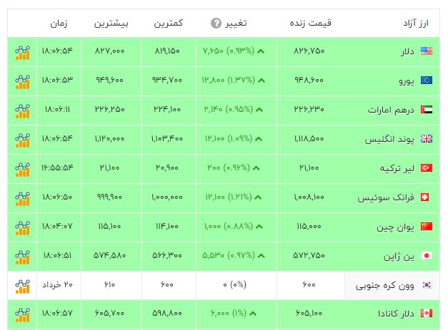 جدول ارزهای رایج را در ادامه مشاهده فرمائید.