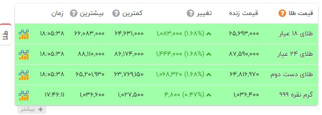 جزئیات قیمت انواع طلا را در جدول زیر مشاهده میفرمایید.