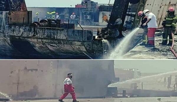 مهر/ لحظاتی پیش با تلاش تیمهای امدادی و غواصان، پیکر فرد مفقودشده در حادثه آتشسوزی کشتی بارج مستقر در اسکله متانول کاوه بندر دیر پیدا شد.